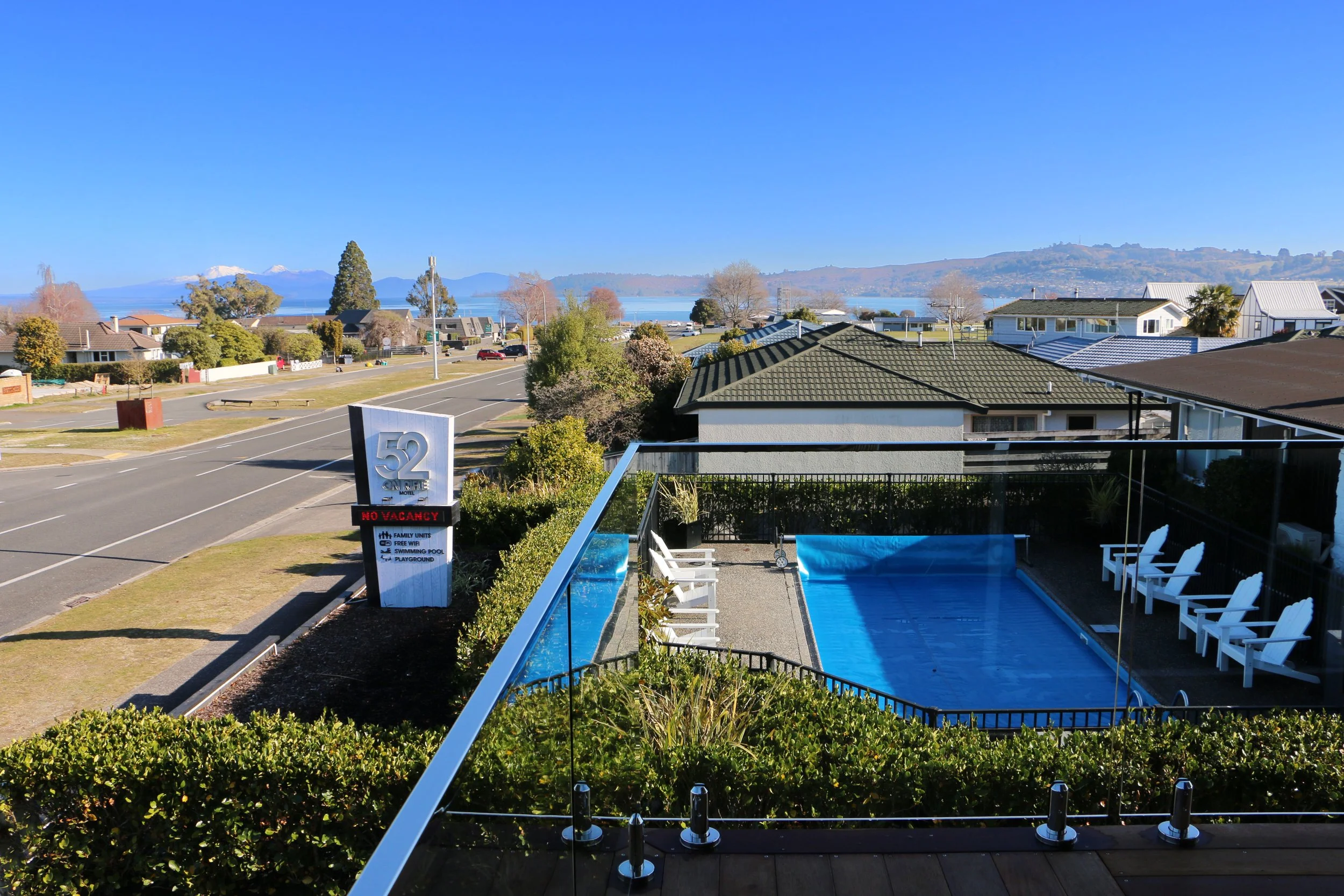This Lake View Two Bedroom Apartment offers stunning views of Lake Taupo and the beautiful mountains of the National Park.